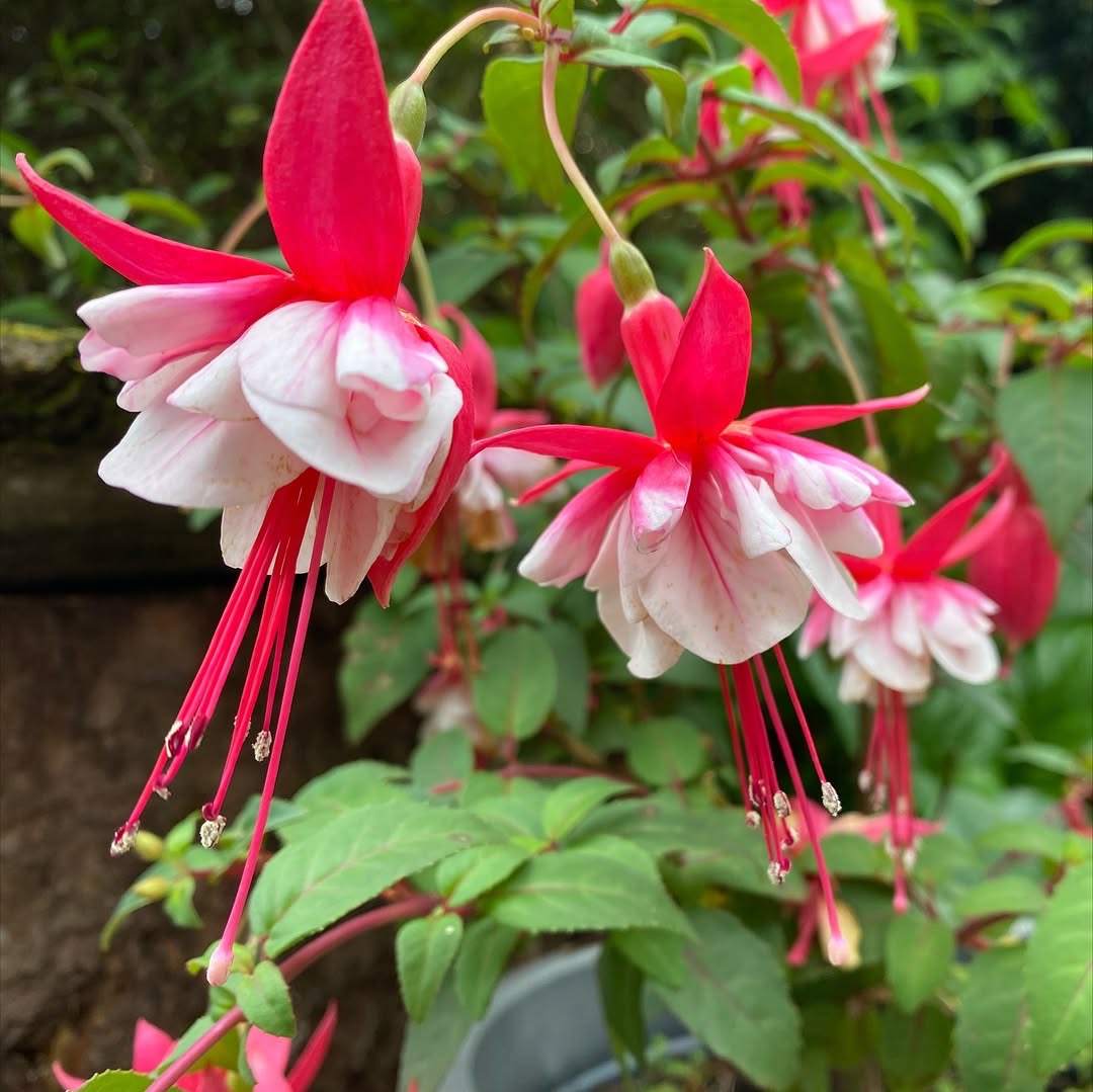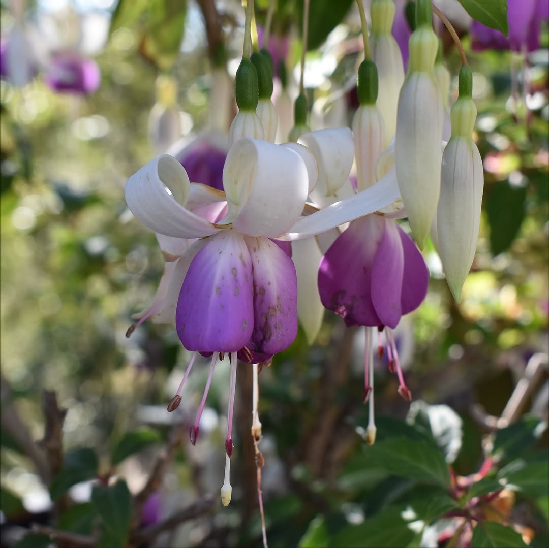 Fuchsia Annabel (bild 4) är en söt och mycket tålig sort som växer upprätt med mängder av små vackra droppformade vita blommor med rosa inslag. Just denna planta och sort är min allra äldsta fuchsia. Hon är ca 18 år gammal🤍🌸