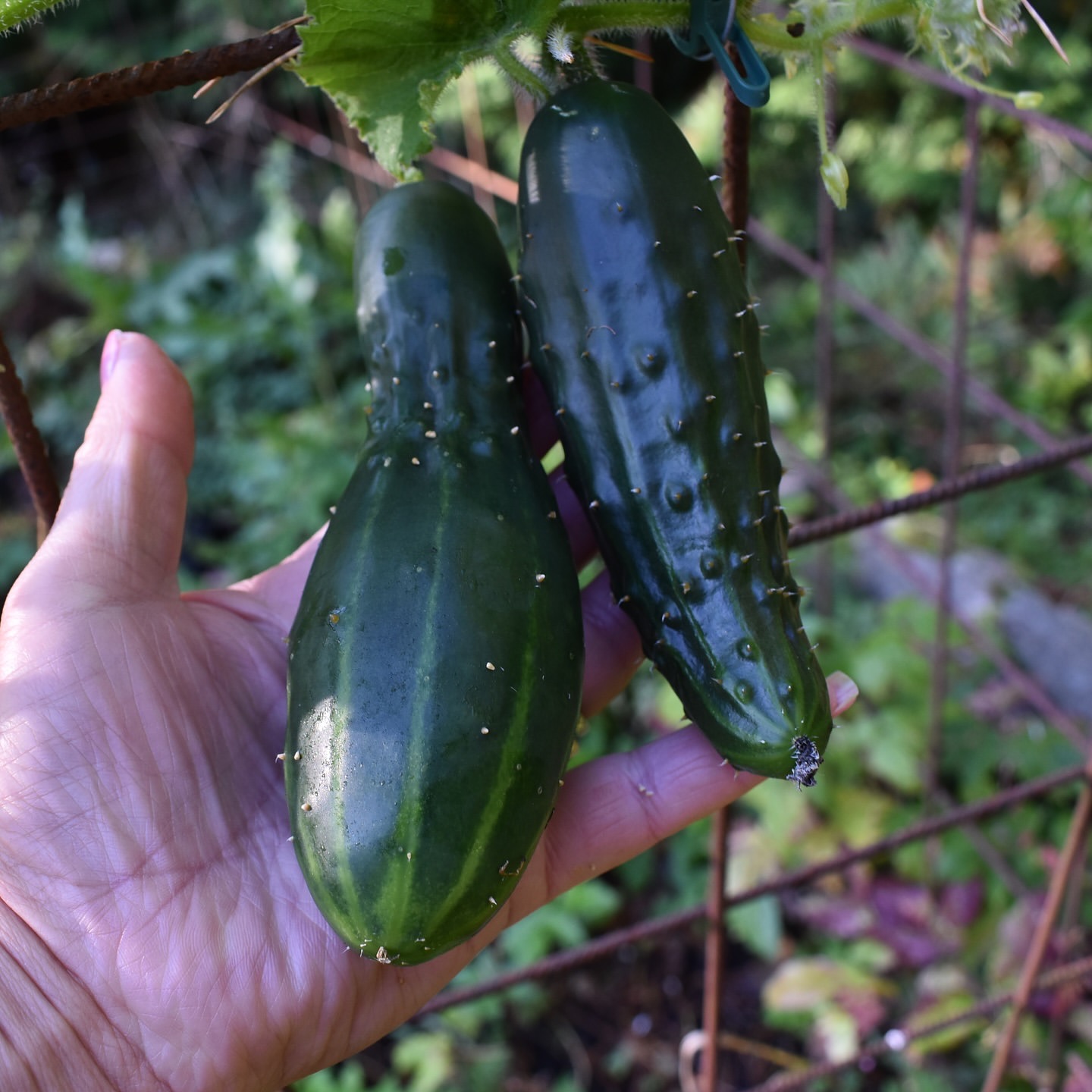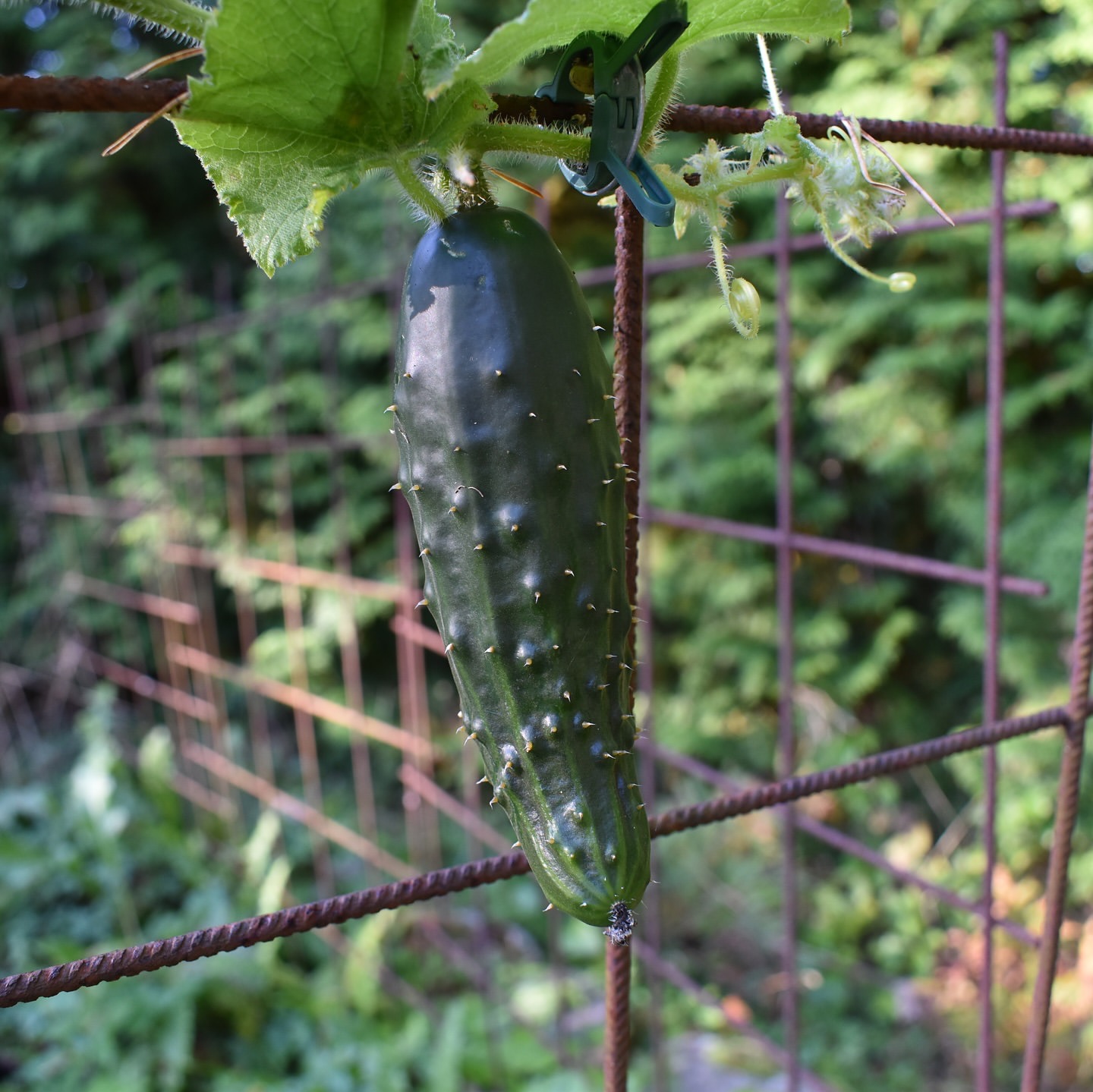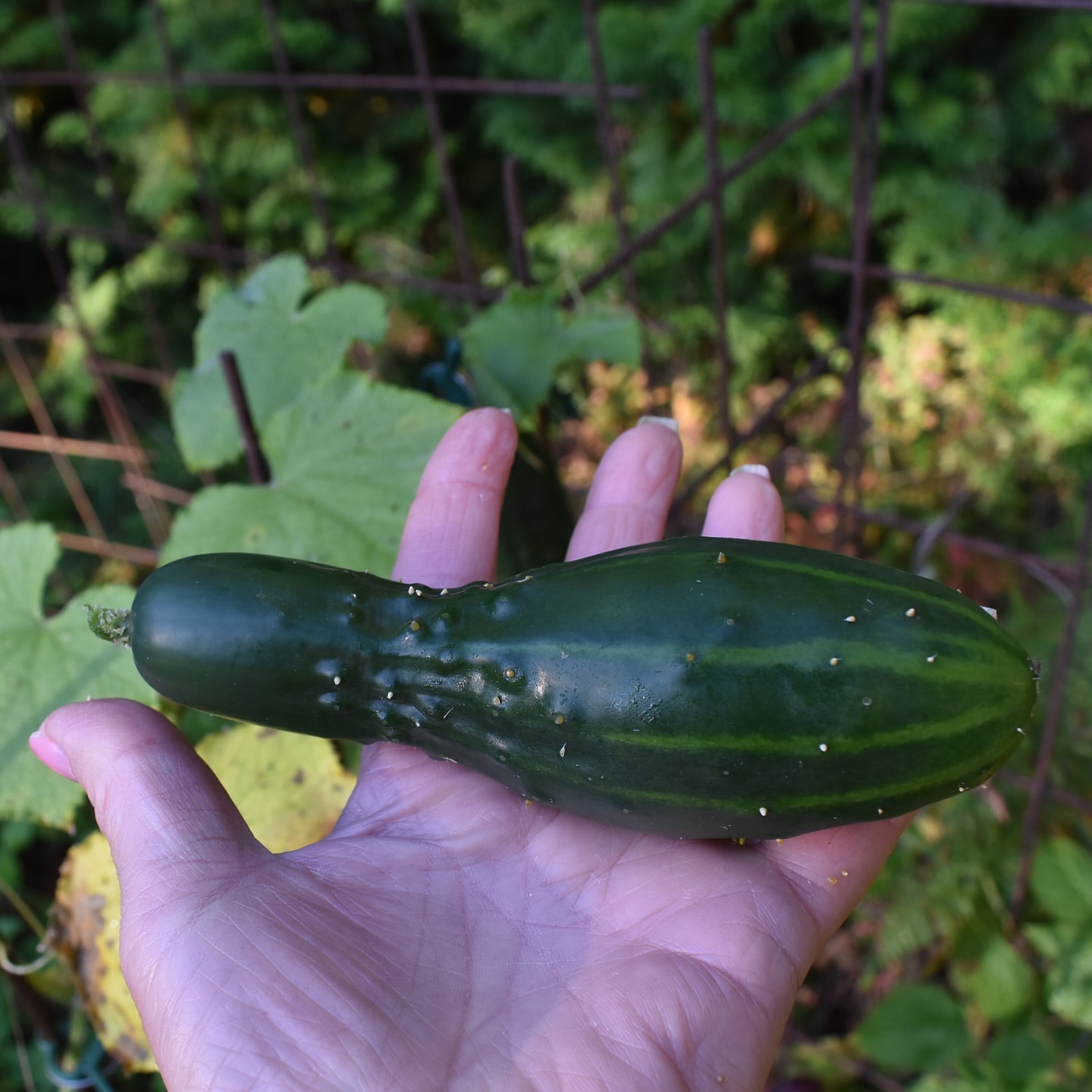 Nåväl, gurkorna har fått klara sig i stort sett helt utan skötsel så det är nog inte så konstigt att skörden blev därefter. Men det får vara så i år och två gurkor är ju bättre än inga, eller hur. Sorten heter i vilket fall Marketmore och den är tacksamt nog en väldigt tålig sort som funkar utmärkt på friland och dessutom är den god både som färsk och inlagd🌱☀️❄️🌬️🥒